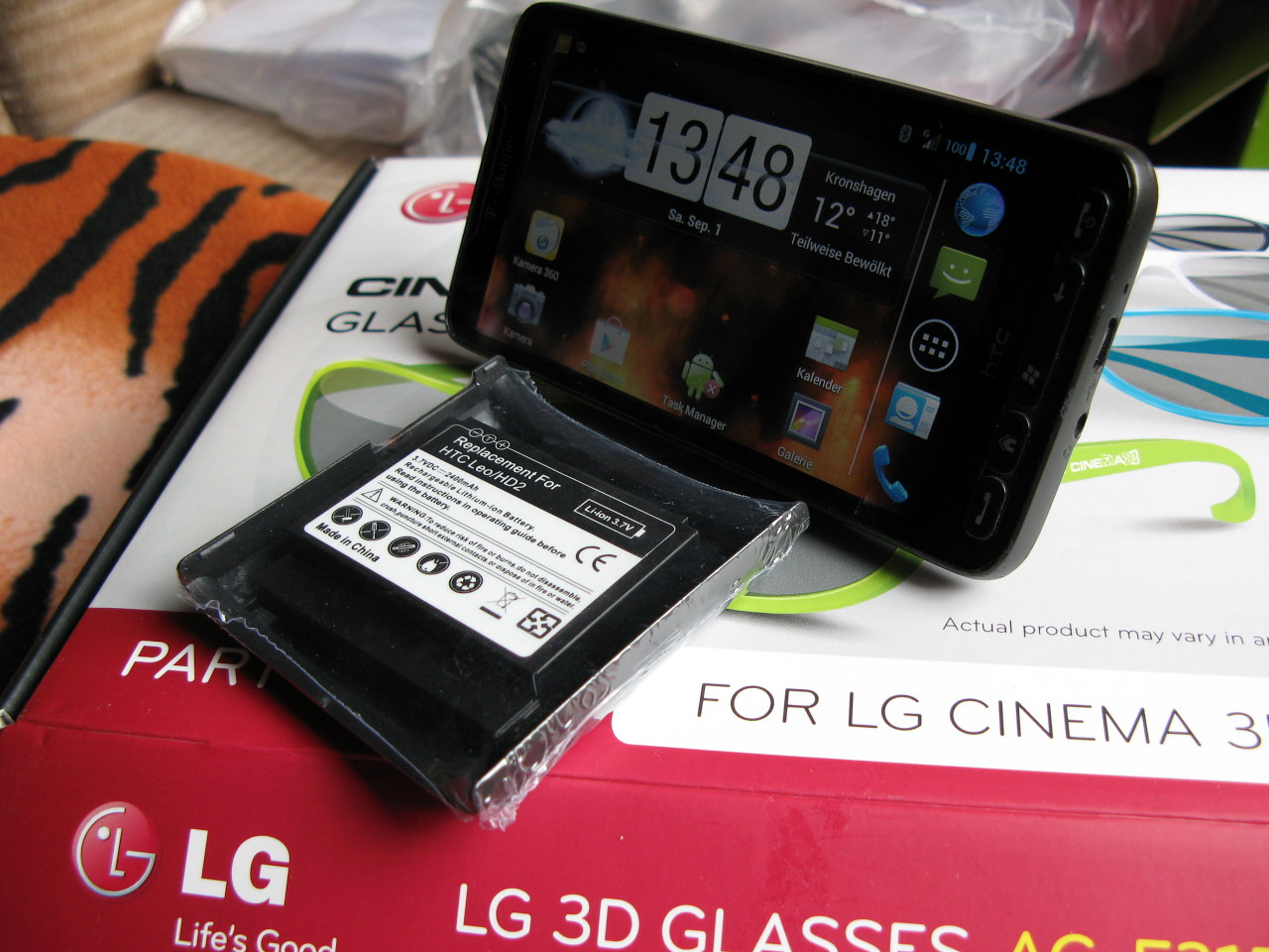 Falls intresse besteht, bestell ich nochmal einen Sack von den Teilen. Unten habe ich mal ein paar Bilder angehaengt, mein Akku ist schon lange im Einsatz und der Deckel von meiner Guertel-Ledertasche schon ein bisschen abgeschubbert. Aber der Akku haelt nun laenger als jedes IPhone; jedes Galaxy III; wirklich jedes andere Smartphone. Die Leute laestern schon, denn wenn die mich staendig mit meinem Smartphone sehen, denn die muessen Strom sparen. Mit dem Akku kann man den ganzen Tag vollgas geben. Und wenn gelaestert wird, weiss ich das die am liebsten auch so ein Strom-Kraftwerk in Ihrem Handy haetten. Dummerweise koennen die das nicht, da bei den neuen Smartphones die Akkus fet verbaut wurden...